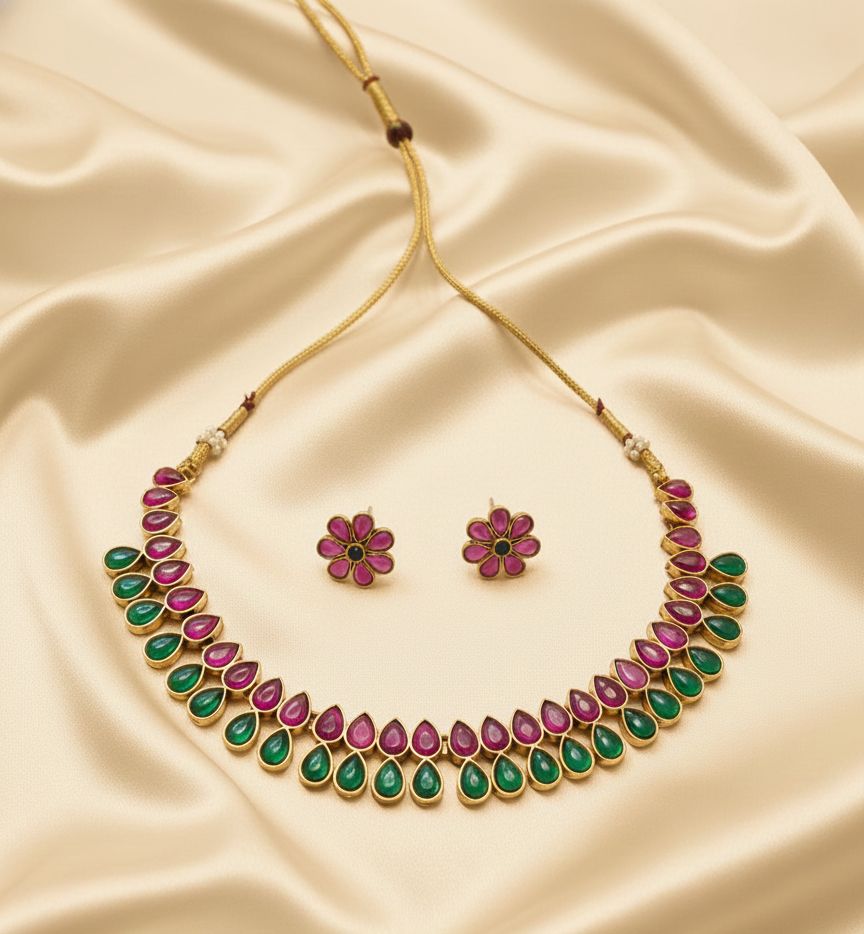 “Nature-inspired elegance 🍃 Ruby & green stones in a timeless leaf design.